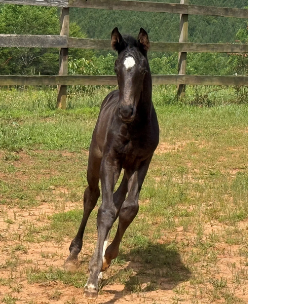 A very black colt that is perfect in every way! Conformationally correct, genetics proven in sport, and a brain that encompasses hospitality! Meaning he is very friendly and smart. We call him "Dave" and gave him a the registered name "Delta Force G"